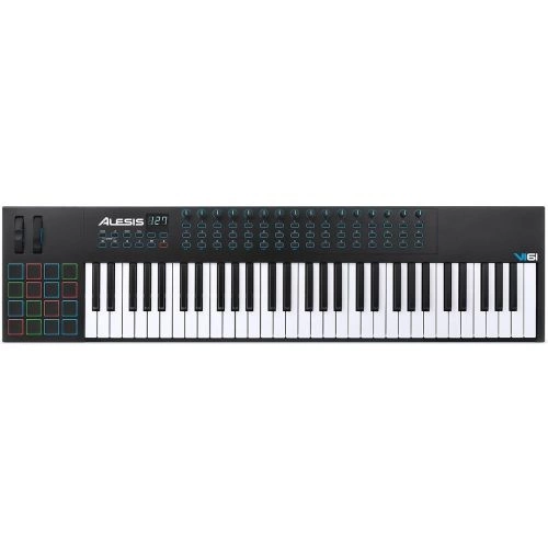 Alesis VI61 to zaawansowany kontroler USB/MIDI, który umożliwia sterowanie funkcjami oprogramowania DAW, przy pomocy zestawu padów, pokręteł i przycisków. Czterdzieści dziewięć dynamicznych, wyważonych klawiszy z funkcją aftertouch oraz przyciski zmiany oktawy, umożliwiają odgrywanie partii basowych, granie akordów i melodii. Ponadto, klawiatura oferuje dwanaście programowalnych pokręteł i trzydzieści sześć programowalnych przycisków, za pomocą których będziesz w stanie kontrolować efekty i wirtualne instrumenty, sterować parametrami filtrów, określać poziomy głośności, aktywować funkcje i modyfikować różne parametry. Lewy sektor kontrolera dysponuje szesnastoma padami, podświetlanymi RGB, które idealnie spisują się jako triggery perkusyjne, oferując bardzo dużą precyzję i czytelną reprezentację wizualną.
