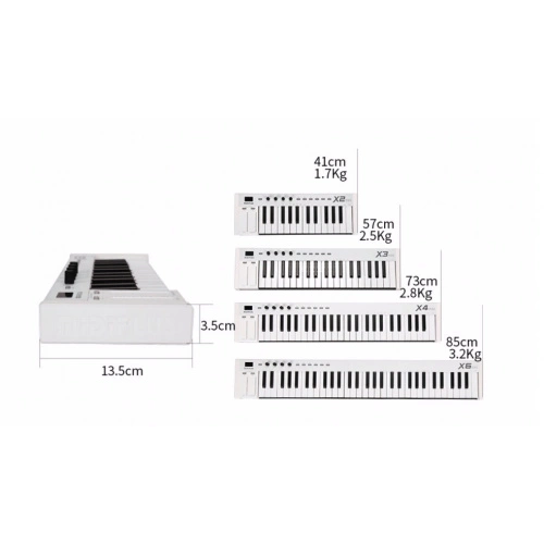 Klawiatura sterująca MIDI o nazwie X mini oferuje wiele funkcji i jest łatwa w użyciu. Dzięki portowi USB, możesz cieszyć się tworzeniem muzyki kiedykolwiek zechcesz. Klawiatura sterująca X6 mini posiada 61 klawiszy. Kontroler X mini wspiera funkcję tzw. 'hot plug', czyli możemy go podłączać do komputera bez jego wyłączania.Nie jest potrzebny żaden sterownik. Zasilanie przez port USB i nie ma konieczności używania zewnętrznego zasilacza.