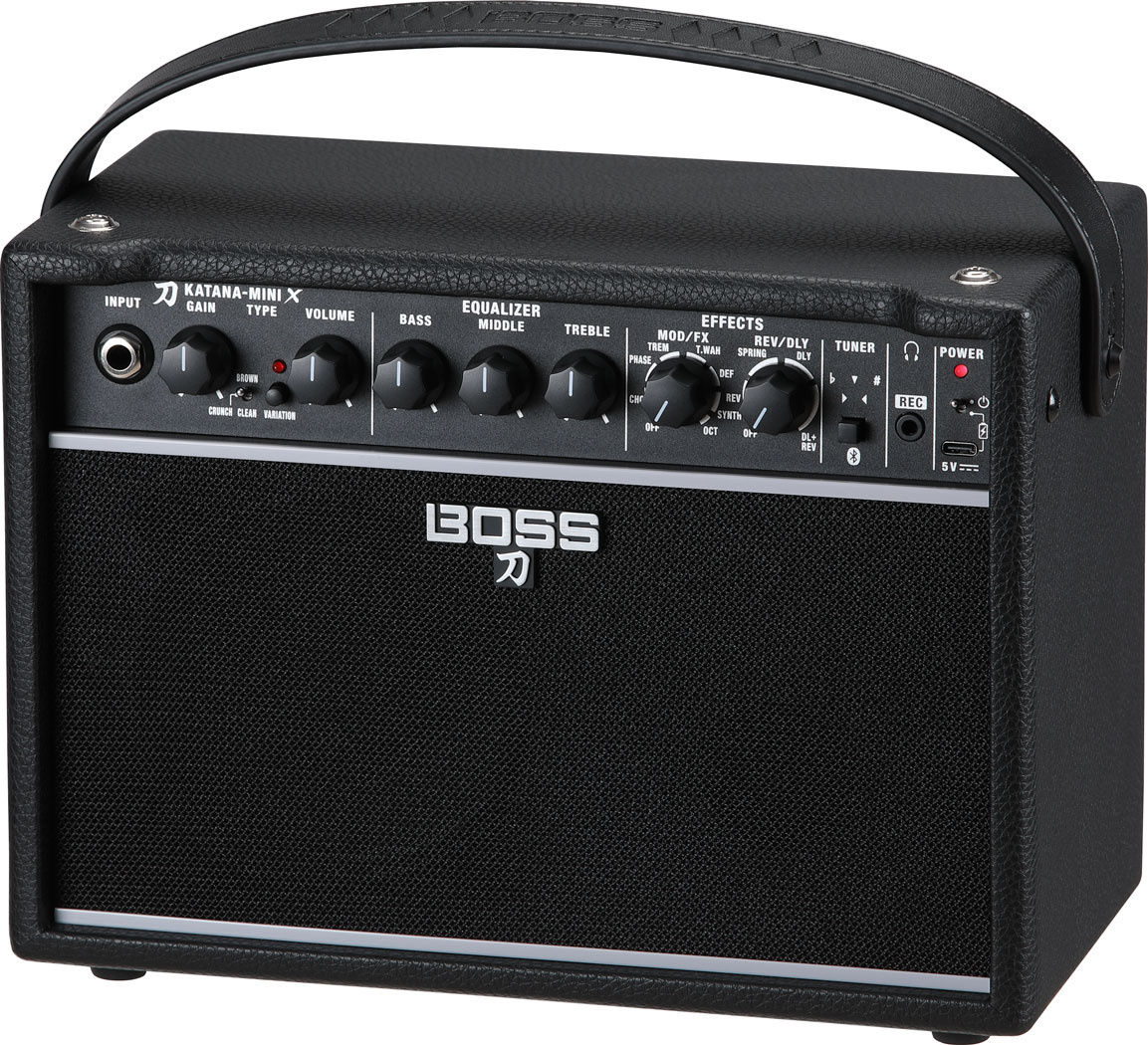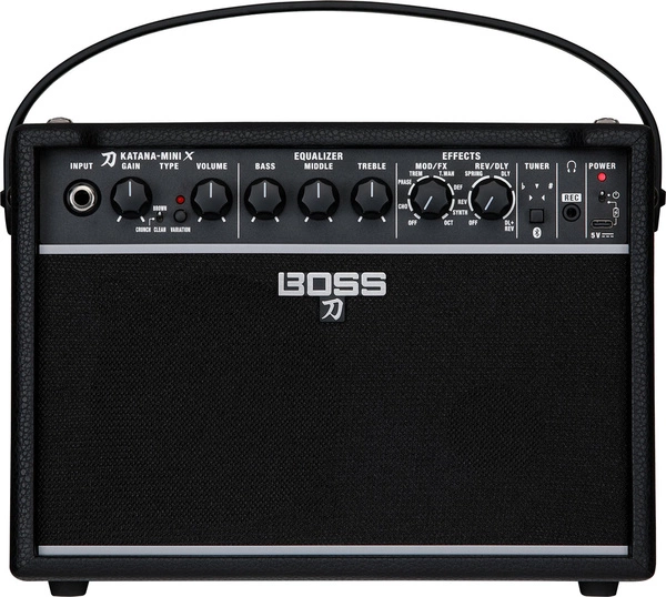 BOSS Katana Mini X to kompaktowy wzmacniacz gitarowy, idealny do ćwiczeń i małych występów, oferujący pełne brzmienie dzięki zaawansowanej technologii Tube Logic.