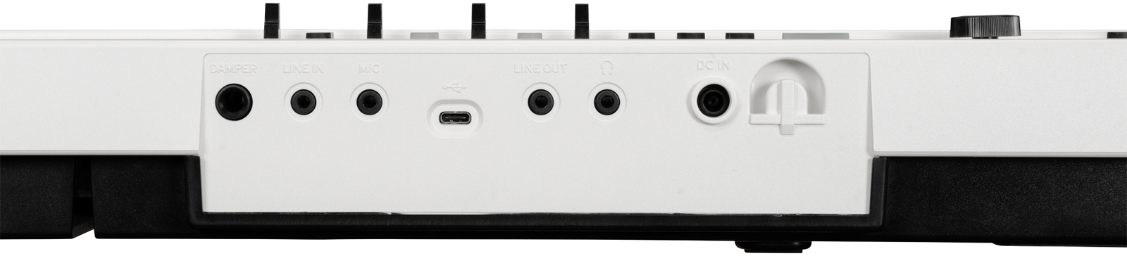 - Złącza: Wyjście słuchawkowe; USB (typ C); złącze pedału; gniazdo DC; wejście mikrofonowe mini jack 3,5 mm (symetryczne); wejście LINE mini jack 3,5 mm (stereo); wyjście LINE mini jack 3,5 mm (stereo)