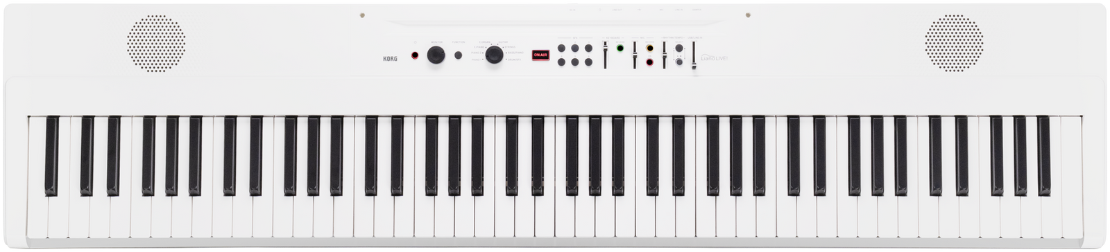 Kompaktowe pianino cyfrowe zaprojektowane z myślą o transmisjach na żywo i mobilnych występach — łączy 88-klawiszową klawiaturę, wbudowany mikser i kompletny zestaw mikrofonowy, umożliwiając szybkie podłączenie do smartfona lub komputera.