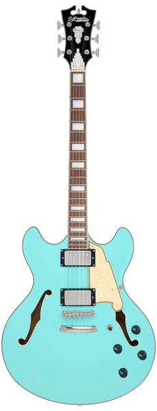 Zaokrąglony, podwójnie wycięty semi-hollow z pełnowymiarowym, ale lekkim blokiem centralnym, DC jest wybitną konstrukcją semi-hollow D'Angelico.