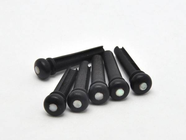 Kołki mostka wykonane z hebanu zapewniają klarowność dźwięku, której mogą brakować niektórym gitarom. Z ładnym okrągłym inkrustacją z masy perłowej, sprzedawane w komplecie 6 sztuk, idealnie utrzymują struny w odpowiedniej pozycji. Wybór materiału kołków może wpływać na brzmienie gitary, co pozwala gitarzystom na eksperymentowanie z różnymi kombinacjami w celu uzyskania pożądanego efektu.