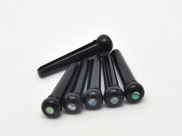 Kołki mostkowe wykonane z plastiku to standardowe wyposażenie większości gitar akustycznych. Oferują one przystępną cenę oraz alternatywę brzmieniową, nie wpływając na balans instrumentu. W zestawie znajdują się 6 sztuk kołków, które posiadają eleganckie, okrągłe inkrustacje z abalonowej muszli.