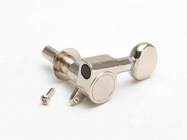 Oryginalne klucze Kluson Toplock oferują innowacyjny system blokady strun od przodu główki, co zapewnia stabilność strojenia. Wkręt blokujący z rowkiem można łatwo dokręcić monetą, a jego nacisk na stalową kulkę skutecznie blokuje strunę wewnątrz wałka. Przełożenie 18:1 "Super-Smooth" gwarantuje precyzyjne strojenie przez cały dzień, a klucze działają również bez użycia funkcji blokady.