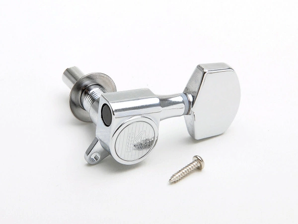Klucze Kluson Modern Toplock to oryginalne rozwiązanie, które umożliwia blokowanie struny od przodu główki. Dzięki wciśniętej śrubie blokującej, którą można dokręcić monetą, struna jest delikatnie blokowana wewnątrz wałka. Klucze działają również bez użycia funkcji blokady, a przełożenie 18:1 zapewnia gładkie i precyzyjne strojenie.