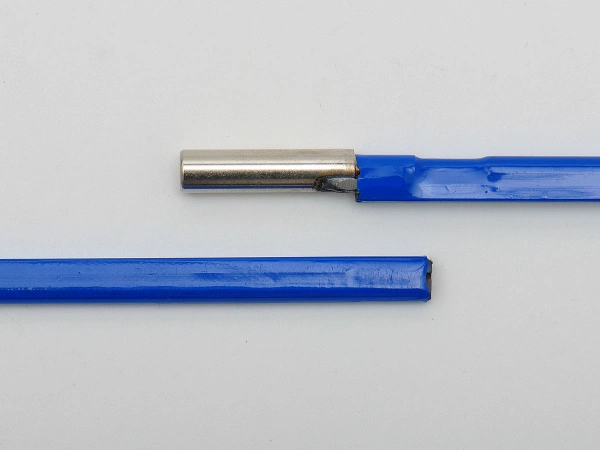 Podwójnie działający pręt napinający w kompaktowej konstrukcji, składający się z dwóch prętów, które mogą być wzajemnie napięte. Nakrętka umieszczona w kapsule, przylutowanej do dolnego pręta, umożliwia precyzyjne dostosowanie krzywizny szyi. Kręcąc nakrętką w prawo, dolny pręt skraca się, co powoduje wygięcie w krzywej wypukłej, a kręcąc w lewo, dolny pręt dociska górny, tworząc wygięcie wklęsłe. Idealny do zastosowania w płaskich profilach szyi.
