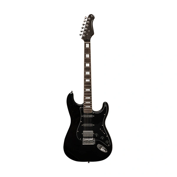 Gitara elektryczna Stagg SES-60 Black to instrument z serii SES, który łączy klasyczną, kultową stylistykę z nowoczesnymi rozwiązaniami, oferując muzykom wszechstronność tonalną i wygodę gry w przystępnej cenie. Korpus wykonany z litej olchy (Solid Alder) gwarantuje rezonansowe brzmienie i solidną podstawę tonalną, a konfiguracja przetworników HSS (Humbucker/Single/Single) sprawia, że jest to idealny model do eksploracji szerokiej gamy gatunków muzycznych, od bluesa i rocka, po metal. Czarny, elegancki kolor i wykończenie na wysoki połysk, w połączeniu z blokowymi inkrustacjami na podstrunnicy, nadają jej profesjonalny i zdecydowany wygląd.